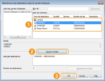 Sélectionnez un destinataire et cliquez sur [Ajouter à la liste]