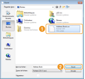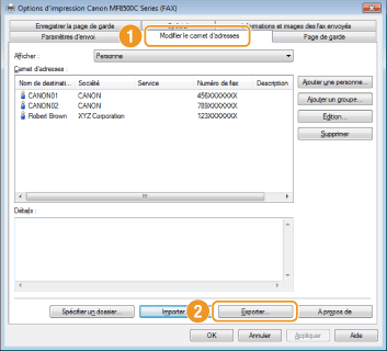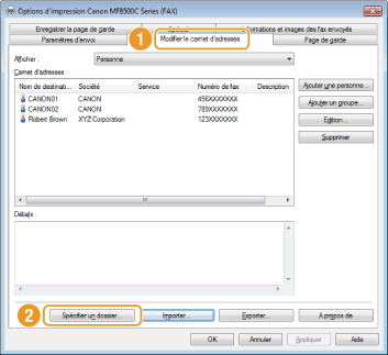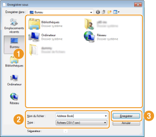 Enregistrez les données du carnet d'adresses dans un dossier comme [Mes documents] pour lequel vous disposez de droits en écriture.