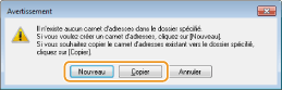 Si vous voulez créer un carnet d'adresses, cliquez sur [Nouveau] ou si vous voulez copier le carnet d'adresses dans le dossier indiqué, cliquez sur [Copier].