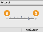 Vous pouvez modifier la netteté de l'image avant de l'envoyer. Augmentez la netteté pour améliorer la netteté d'un texte flou ou de lignes floues et diminuez-la pour améliorer l'apparence de photos de magazine.