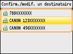Sélectionnez <Confirmer/modifier un destinataire> et appuyez sur