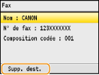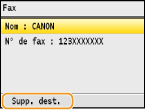 Appuyez sur <Supp. dest.>, sélectionnez <Oui> et appuyez sur