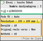 * Il est possible de combiner la spécification des 10 destinataires en utilisant un serveur LDAP et les touches numériques. Si vous utilisez les touches numériques et un serveur LDAP, vous pouvez définir 10 destinataires au total. Si, par exemple, vous avez défini sept destinataires à l'aide des touches numériques, vous pouvez définir les trois autres par le biais d'un serveur LDAP.