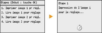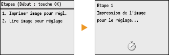 Ce réglage permet d'obtenir de meilleurs résultats lorsque vous copiez ou imprimez des documents à partir d'une clé USB. Pour corriger des images copiées, une image de réglage sera imprimée et numérisée. Notez que vous ne pouvez pas effectuer ce réglage si vous utilisez certaines fonctions comme la numérisation et l'impression.