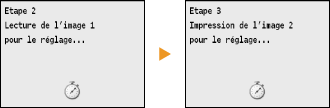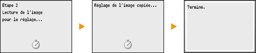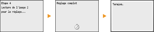 L'image de réglage est numérisée et l'opération de réglage commence. Environ 1 à 2 minutes plus tard, le réglage se termine.