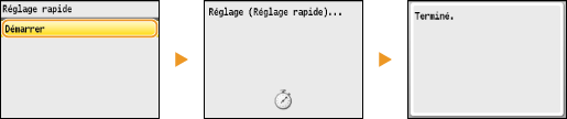 Ce réglage a pour but de préserver les réglages de l'appareil en l'état optimisé acquis suite à l'opération <Réglage complet>. Notez que vous ne pouvez pas effectuer ce réglage si vous utilisez certaines fonctions comme la numérisation et l'impression. Si vous n'êtes pas satisfait des résultats obtenus, procédez à une opération <Réglage complet>. Ce réglage peut être exécuté automatiquement après le remplacement d'une cartouche de toner.