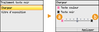 Les réglages sont appliqués aux copies couleur lorsque <Type d'original> est réglé sur <Texte/Photo/Carte> ou <Texte> (Sélection du type de document).
