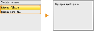 Sélectionnez <Réseau filaire> ou <Réseau sans fil> et appuyez sur