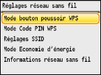 Sélectionnez <Réglages réseau sans fil> et appuyez sur