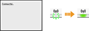 Lorsque la configuration est terminée, l'écran ci-dessous s'affiche ; au bout de 2 secondes environ, le témoin Wi-Fi s'allume.