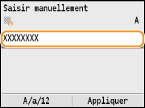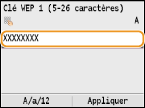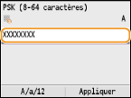 Indiquez la clé réseau à l'aide des touches numériques et appuyez sur <Appliquer>. Saisie du texte