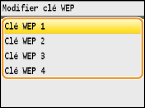 Sélectionnez la clé WEP (1 à 4) à modifier et appuyez sur