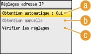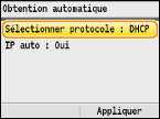 ![]() Si <Oui> s'affiche, sélectionnez <Obtention automatique>