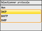 Sélectionnez <DHCP>, <BOOTP> ou <RARP> et appuyez sur