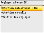 Vérifiez si <IP auto> est réglé sur <Oui>.