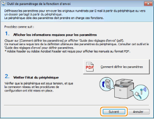 Si vous désirez afficher le Guide des réglages d'envoi, cliquez sur [Comment définir les paramètres].