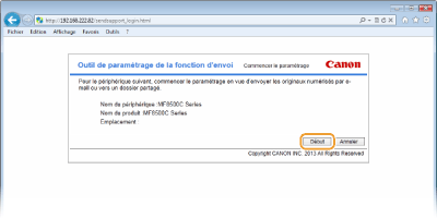Cliquez sur [Début] pour [Outil de paramétrage de la fonction d'envoi].