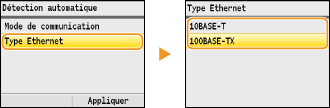 sélectionnez <10BASE-T> ou <100BASE-TX> .![]() |