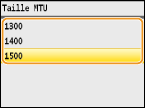 Dans la plupart des réseaux Ethernet, la taille maximale d'un paquet pouvant être envoyé est de 1 500 octets. Un paquet représente la portion des données selon laquelle les données d'origine sont divisées avant d'être envoyées. L'unité de transmission maximale (MTU) varie d'un réseau à l'autre. Modifiez les réglages de l'appareil au besoin. Pour plus d'informations, contactez votre administrateur réseau.