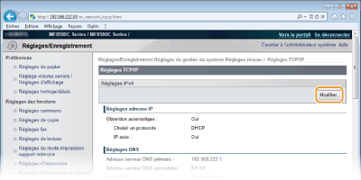 Cliquez sur [Modifier...] dans [Réglages IPv4].