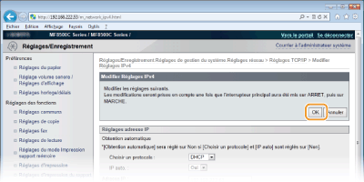 Cliquez sur [Modifier...] dans [Réglages IPv6].