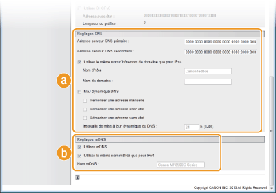 Cochez la case pour utiliser le même nom mDNS que pour IPv4. Pour définir un autre nom, désactivez la case et tapez le nom mDNS dans la zone de texte [Nom mDNS ]. |