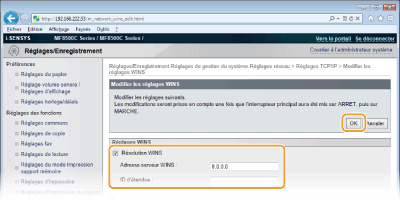 Cliquez sur [Modifier...] dans [Réglages WINS].