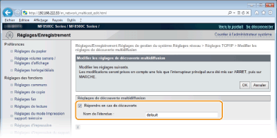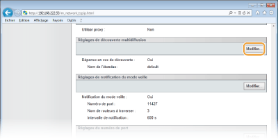 Cliquez sur [Modifier...] dans [Réglages de découverte multidiffusion].