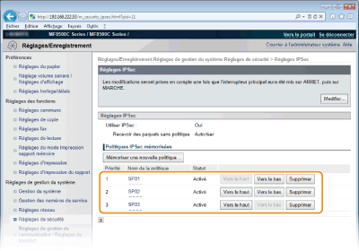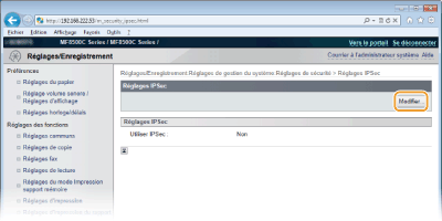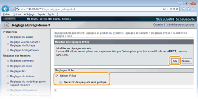 Vous pouvez activer ou désactiver les communications IPSec à partir de