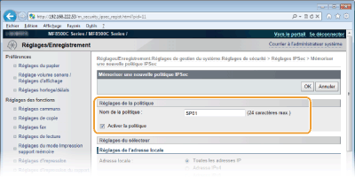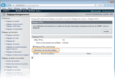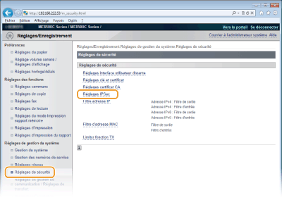 [Réglages IPSec].