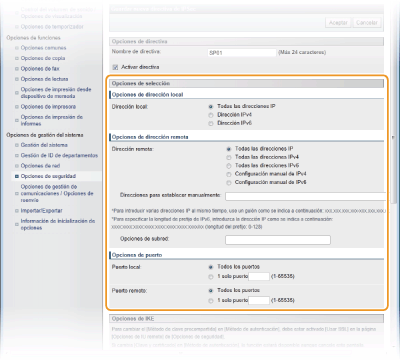 Sélectionnez cette option pour utiliser IPSec pour tous les paquets IP qui sont envoyés ou reçus par l'adresse IPv4 de l'appareil.