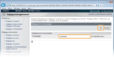 Saisissez une clé pré-partagée composée de 24 caractères alphanumériques maximum et cliquez sur [OK].