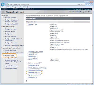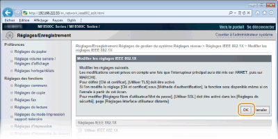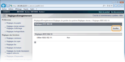 Vous pouvez activer ou désactiver l'authentification IEEE 802.1X à partir de  . Réglages IEEE 802.1X
