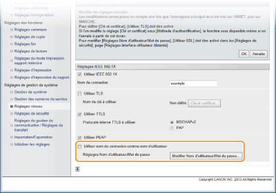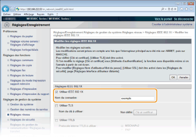 Cochez la case [Utiliser IEEE 802.1X], saisissez le nom de connexion dans la zone de texte [Nom de connexion ], puis définissez les réglages requis.