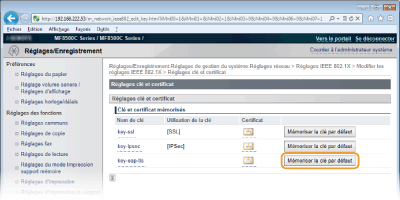 Vous pouvez vérifier les détails d'une paire de clés ou d'un certificat en cliquant sur le lien correspondant sous [Nom de clé], ou sur l'icône du certificat. Vérification des paires de clés et des certificats numériques