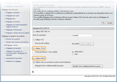 Cochez la case [Utiliser TTLS ] ou [Utiliser PEAP ].
