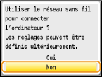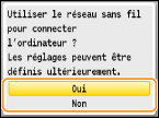 , puis passez à la section Raccordement via une connexion réseau local sans fil (MF8580Cdw / MF8280Cw uniquement). Si vous voulez établir une connexion réseau local sans fil ultérieurement, utilisez