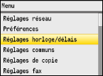 Définissez <Fuseau horaire> avant de définir la date et l'heure courantes. Si le réglage <Fuseau horaire> est modifié, la date et l'heure actuelles refléteront cette modification.