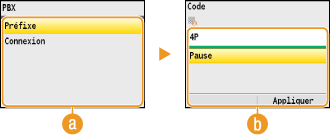 Sélectionnez <Préfixe> ou <Connexion>