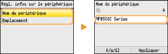 Sélectionnez <Nom du périphérique> ou <Emplacement>