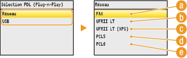 Sélectionnez <Réseau> ou <USB>