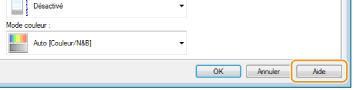 Cliquer sur [Aide] dans l'écran du pilote d'imprimante affiche l'écran du système d'aide. Dans cet écran, vous avez accès à des descriptions détaillées qui ne se trouvent pas dans le manuel électronique.