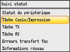 .![]() <Statut tch Copie/Impr.>Affiche la liste des documents en cours de traitement, de copie ou en attente de traitement.