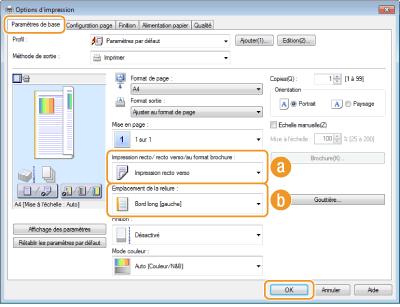 Sélectionnez [Impression recto] ou [Impression recto verso] pour [Impression recto/recto verso/au format brochure]