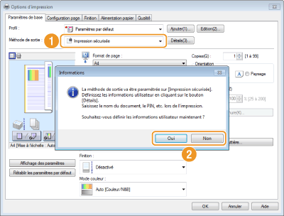 Sélectionnez [Impression sécurisée] en tant que [Méthode de sortie].