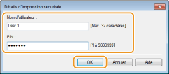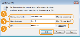 Vérifiez le nom du document, le nom d'utilisateur et le code PIN, puis cliquez sur [OK].