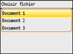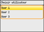 Si les documents sécurisés de deux ou plusieurs utilisateurs sont placés en mémoire, l'écran <Choisir utilisateur> s'affiche avant l'écran <Choisir fichier>. Utilisez