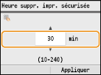 Indiquez le laps de temps pendant lequel l'appareil conserve les documents sécurisés et appuyez sur <Appliquer>.