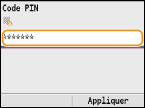 Saisissez le code PIN à l'aide des touches numériques et appuyez sur <Appliquer>.