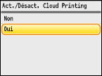 Sélectionnez <Act./Désact. Cloud Printing> et appuyez sur